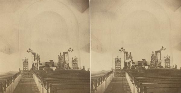 Interior views showing the altar of the Protestant Episcopal church built 1859-1860 after the designs of Stephen P. Rush.