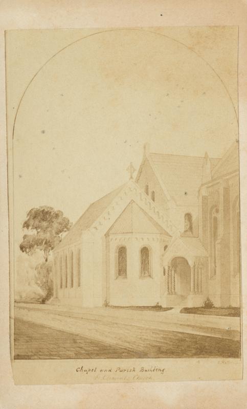 Reproduction of drawing showing the auxiliary buildings of the church constructed between 1855 and 1859 after the designs