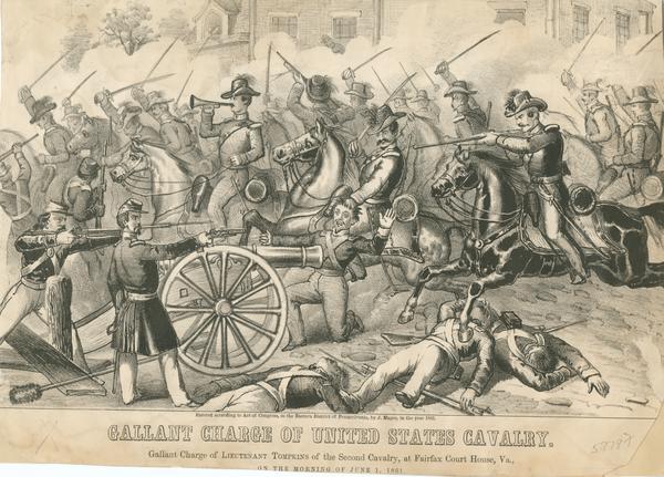 Gallant charge of United States Cavalry. Gallant charge of Lieutenant Tompkins of the Second Cavalry, at Fairfax Court House, Va., on the morning of June 1, 1861. [graphic].