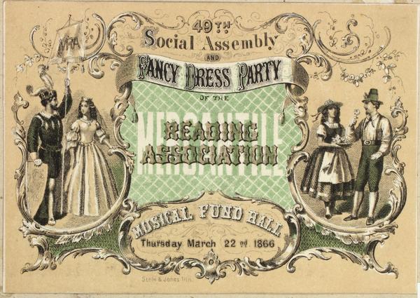 49th social assembly and fancy dress party of the Mercantile Reading Association. Musical Fund Hall, Thursday March 22, 1866 [graphic].