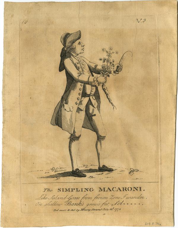 The simpling macaroni. [graphic] : Like Soland-goose from frozen zone I wander, on shallow banks grows fat, Sol*****.