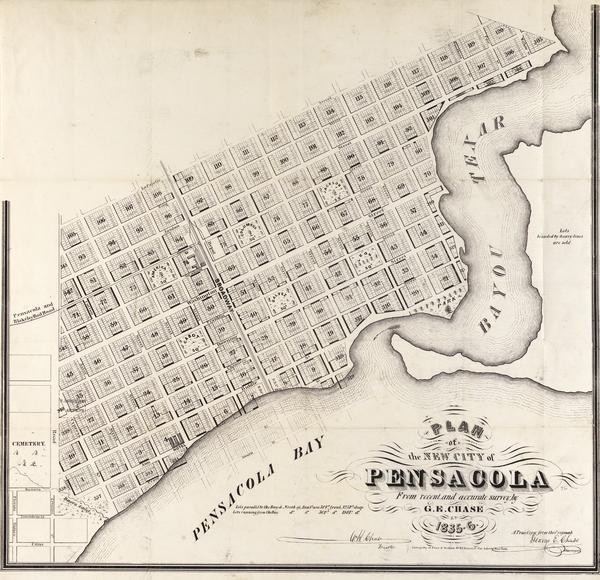 Plan of the new city of Pensacola [cartographic material] / From recent and accurate survey by G. E. Chase in 1835-6.