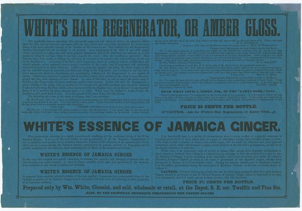 contains testimonials and several lines of text describing the benefits of “White’s Hair Regenerator, or Amber Gloss” and