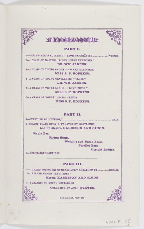 Programme of the Soirée Gymnastique, and last grand reunion of all the classes connected with the Philadelphia Natatorium