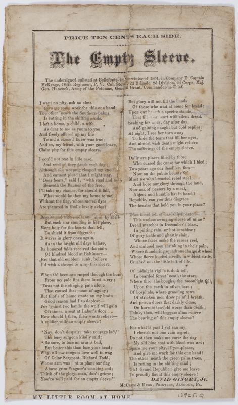 A prose account of Gingry's service in the Army of the Potomac, during the Civil War, precedes the poem; Gingry was severely