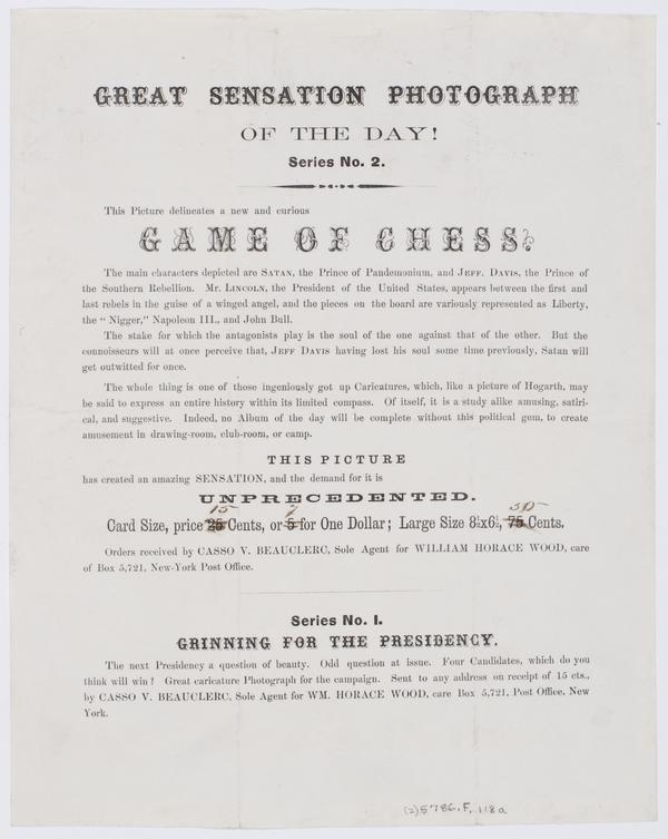 Great sensation photograph of the day!. Series no. 2, ... Game of chess ... Series no. 1, Grinning for the presidency ...