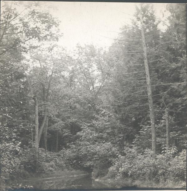 Photographer's manuscript note on verso: Along the Pennypack Creek. With trees and shrubs of almost jungle growth, who would think we are within the limits of a city having a population of about 2,000,000 people.