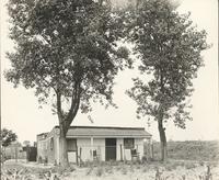 View showing a bungalow-style residence in a rural area, possibly in North Philadelphia. Stalks of corn are visible in the foreground.