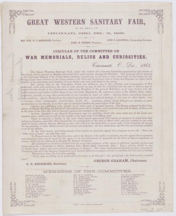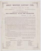 Great Western Sanitary Fair (1863 : Cincinnati, Ohio). Committee on War Memorials, Relics and Curiosities.