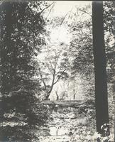 Photographer's manuscript note on verso: A more romantic stretch of road than the Wissahickon Drive, but not as well kept. Deserted old houses, old bridge heads, huge rock outcroppings, a laughing stream that ever and anon in placid mood seems to whimsically borrod over the sun kissed ripples that have gone or the babble of playful turbulance [sic] to the fore. All these things greet the eye. Travelers do not jamb the road or paths and automobiles praise Heaven are few.