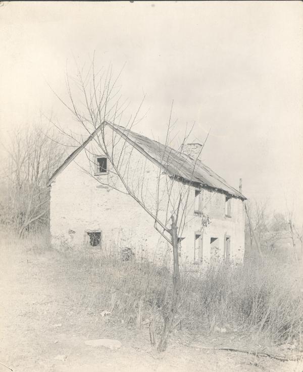 Photographer's manuscript note on verso: Away out in the country? Not at all - simply an abandoned old house a bit west of 69" and Market Sts on Remington Rd.