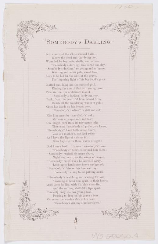 Poem written in 1864? by Marie Ravenel de Lacoste; later set to music by John Hill Hewitt. |