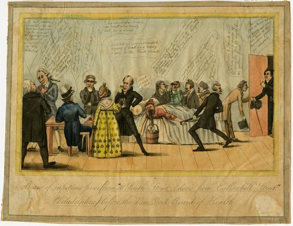 Cartoon criticizing the New York Board of Health's handling of the 1820 yellow fever epidemic based upon August 1820 newspaper