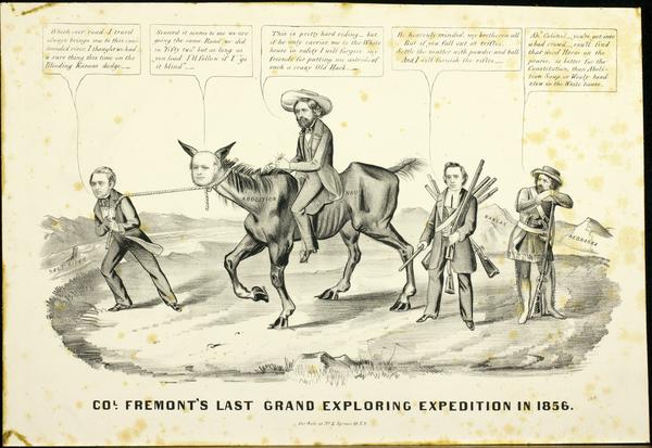 Cartoon ridiculing the antislavery convictions of John C. Frémont, the 1856 Republican presidential candidate and former explorer,