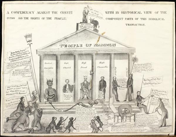 symbolic and political figures including: the Devil representing the "Hartford Convention" of 1815, which debated Northern