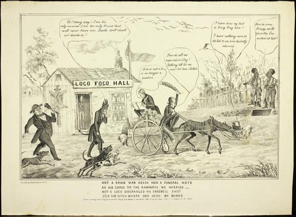 do all our hopes end in Clay," as he steers a funeral cart carrying Van Buren, depicted as a dead fox; his son, poet Robert