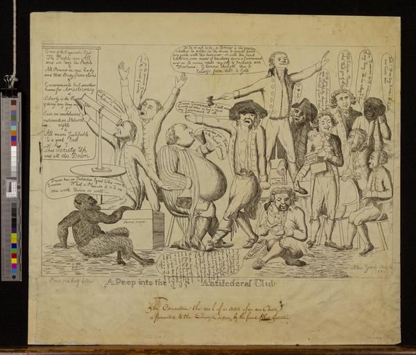 Manuscript note on recto: This Caricature the work of an Artist of our own Country is presented to the Library Company by