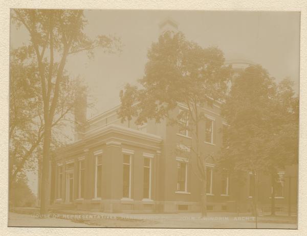 James Hamilton Windrim was commissioned in 1877 to add a one-story extension to the House side of the Stephen Hills-designed Capitol building in Harrisburg to accomodate new members of the General Assembly. From 1895 to 1897 he was commissioned, with his son John T. Windrim, to perform alterations and upgrades on the building.