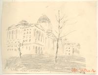 Seventeen pencil and chalk sketches depict various exterior views of the Capitol and surrounding properties during the construction