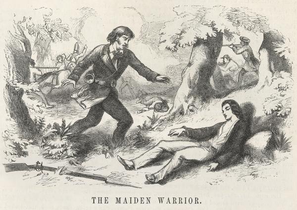 Full-length recumbent portrait of the American woman from South Carolina who disguised herself as a man and joined the Continental Army; her sex was not discovered until after she died in battle (either in 1782 or 1778).