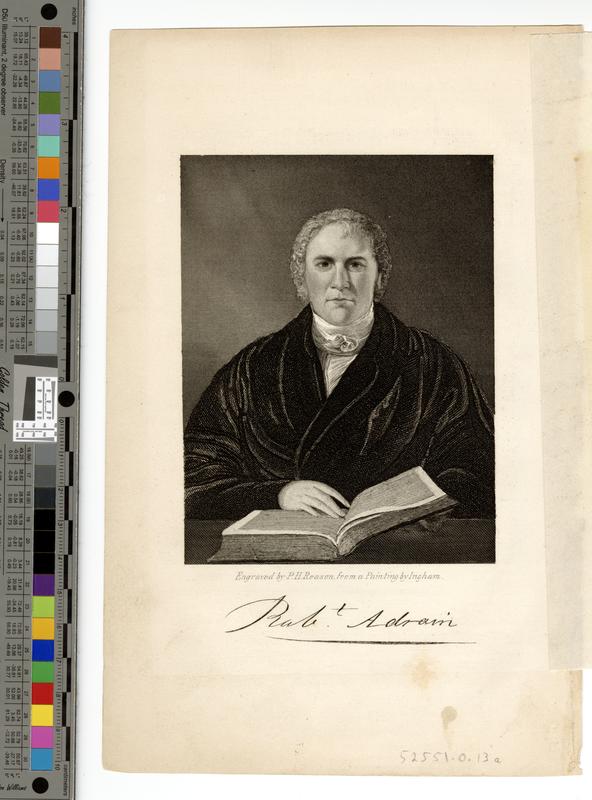Robt Adrain [graphic] / Engraved for the Democratic Review by P.H. Reason. From a painting by Ingham.
