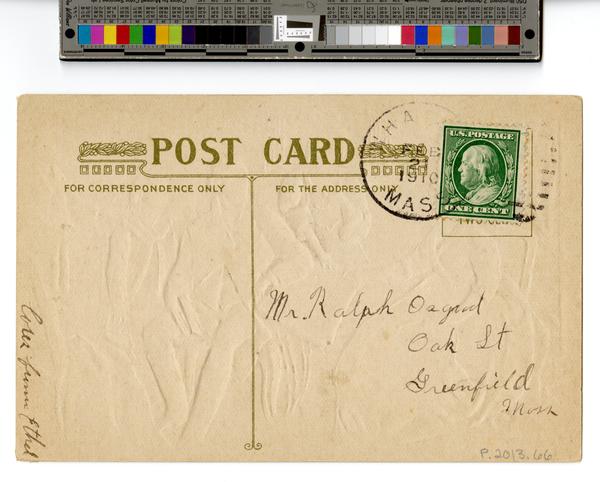 Addressed in manuscript to: Mr. Ralph Osgood, Oak St., Springfield, Mass. |
