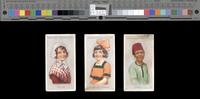 Series of pop out cigarette cards depicting waist-length portraits of children (boys and girls) of different nationalities attired in their "native" costume. Includes Arabia (boy); Australia (boy); Belgian Congo (boy); Belgium (girl); Bulgaria (boy); Burma (girl); Denmark (girl); Egypt (girl); England (boy); Greece (girl); Holland (girl); Hungary (boy); Italy (girl); Ireland (girl); Mexico (boy); Natal (girl); New Zealand (girl); Norway (girl); Palestine (girl); Patagonia (girl); Poland (girl); Portugal (boy); Rumania (girl); Russia (girl); Scotland (boy); Siam (boy); Spain (girl); Sweden (girl); Tahiti (girl); Tibet (girl); Tunis (girl); Turkey (girl); United States (girl); and Wales (girl). The Ogden Branch was originally founded by Thomas Ogden as the Ogdens Tobacco Company in 1860. In 1901, American Tobacco Company bought Ogden's Tobacco Company and it in turn was bought by Imperial Tobacco Co. in 1902. Ogden started to include cigarette cards in its packaging in 1894.