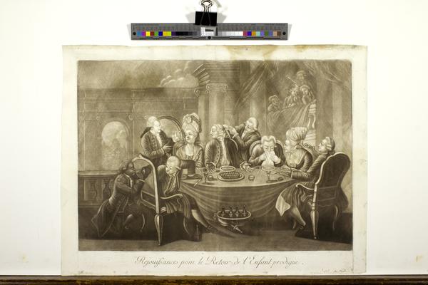 "Rejouissances pour le retour de l'enfant prodigue" shows the celebration of the prodigal son’s return with a feast. Depicts