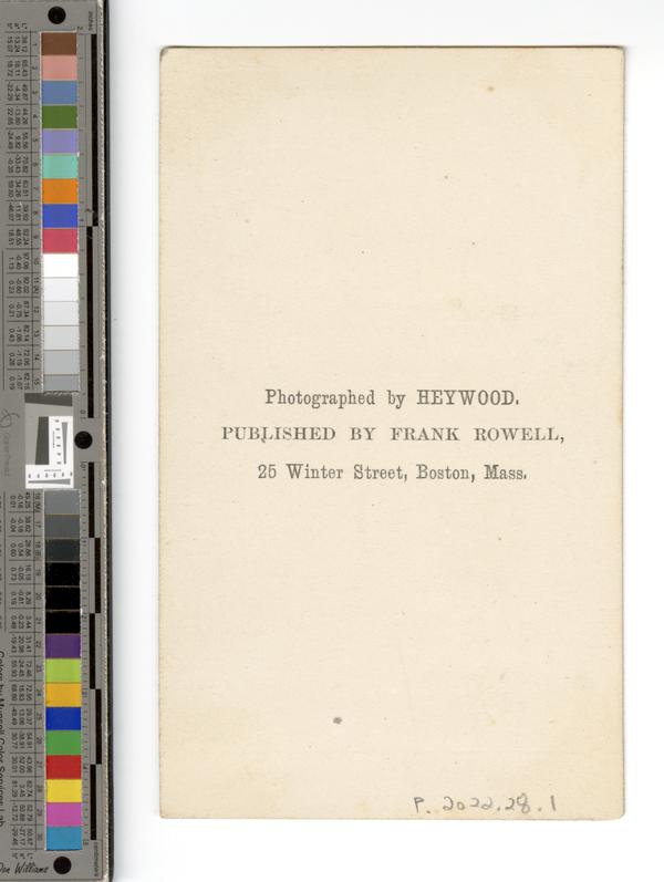 John B. Heywood (d. 1870) operated a photographic studio in Boston circa 1858-circa 1870, when he then appears to have relocated