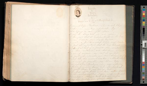 Hudson Female Academy during the early 1860s. Entries include original and transcribed poems, prose, and essays; miniature