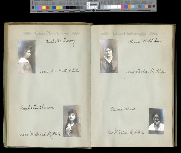 Phila.; Grace Wilhelm, 1524 Parker St., Phila.; Annie Wood, 762 N. Uber St., Phila. (African American student); Emily Woodward,