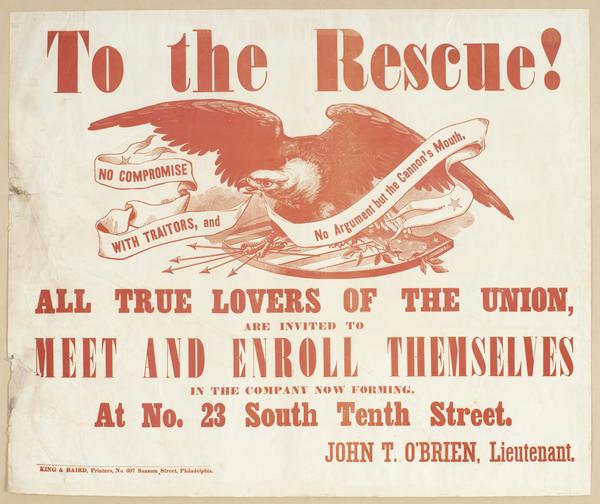 To the rescue! : All true lovers of the Union, are invited to enroll themselves in the company now forming, at No. 23 South Tenth Street. / John T. O'Brien, Lieutenant.