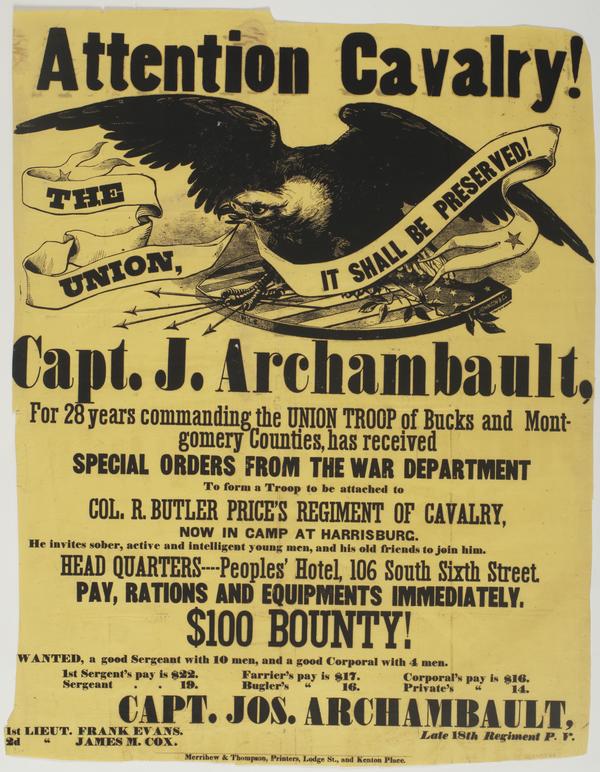 Attention cavalry! : Capt. J. Archambault, for 28 years commanding the Union Troop of Bucks and Montgomery counties, has received