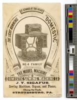 Advertising printed on verso: "It stands at the head. The light running "Domestic" No. 4 Family. The best. The model machine.