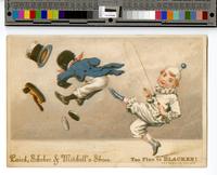 propelled into the air. His top hat, shoe shining stool, and open can of shoe polish flies away from him. Laird, Schober &