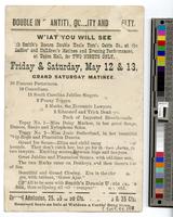 May 12 & 13, Grand Saturday Matinee. 30 famous performers. 10 comedians. 15 South Carolina Jubilee Singers. 2 Funny Topsys.