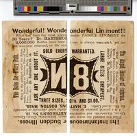 Back, Chest, Limbs, &c.? Dr. Hartshorn's No. 18. Company logo illustrated on verso. Logo composed of a geometrically-shaped