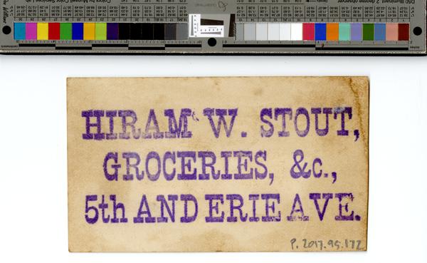 Hiram W. Stout, groceries, &c., 5th and Erie Ave. [graphic]. |