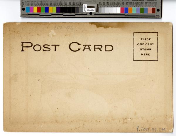 Text printed on the verso: Post Card. Place one cent stamp here. |