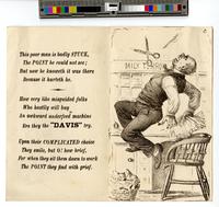 Racist circular promoting Davis Sewing Machine Co. and depicting a caricature of an African American boy “spying” into an