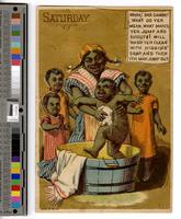Saturday. Whoa! Dar Sambo! What do yer mean, what makes yer jump and shout? I will wash yer clean with Higgins' soap, and then yer may jump out [graphic].