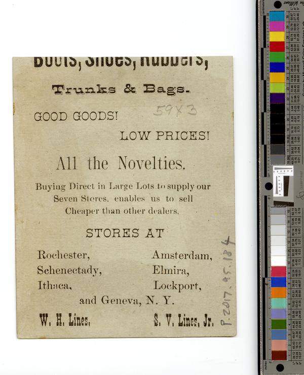 Library Company of Philadelphia| Print Department| Goldman Trade Card Collection - W.H & S.V. Lines [P.2017.95.184] |