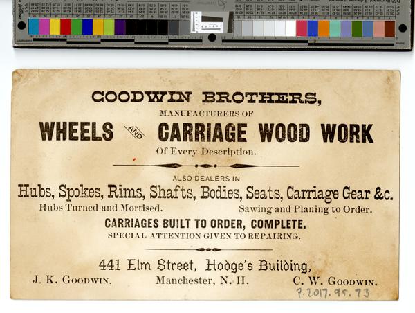 (1844-1910) and Charles W. Goodwin (1853-1943) were wheelwrights in Manchester, New Hampshire.