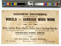Advertising text printed on the verso: Goodwin Brothers, manufacturers of wheels and carriage wood work of every description.