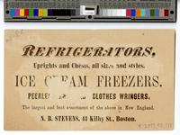 Refrigerators. N.B Stevens, 43 Kilby Street, Boston. [graphic]. |