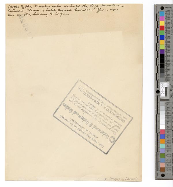 Corporate photographer and publisher from stamp on verso: This credit line should not be omitted, altered, or abbreviated: