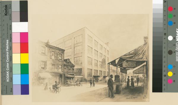 See accompanying pamphlet containing the artist's descriptions of the views, "Ever-Changing Philadelphia" (Philadelphia: Frank