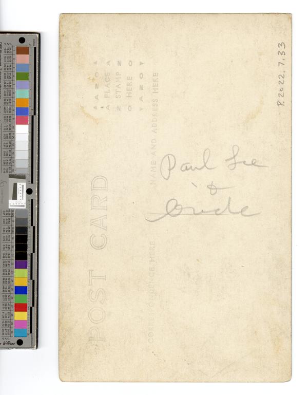 1 photograph : gelatin silver ; sheet 9 x 14 cm (3.5 x 5.5 in.) (postcard format) |