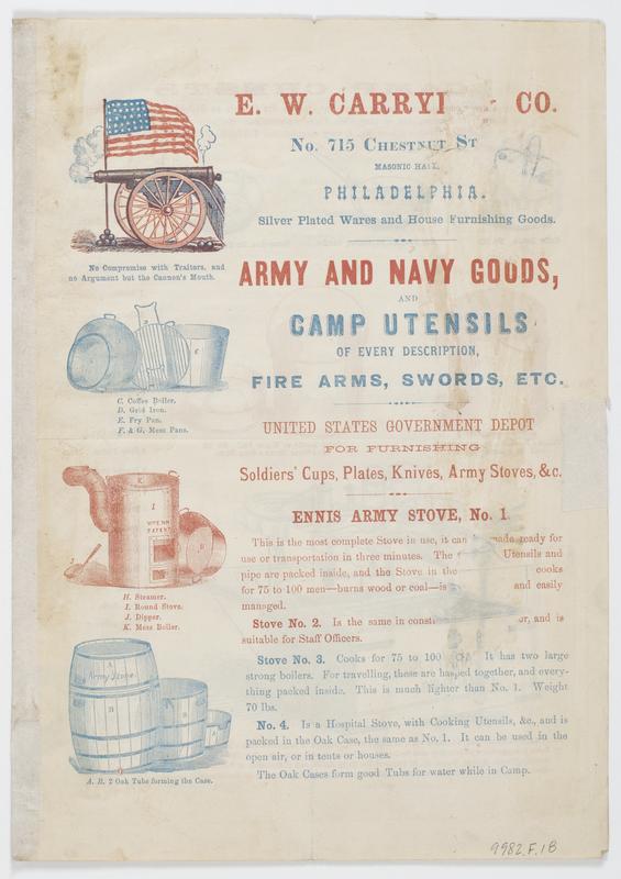 E.W. Carryl & Co. No. 715 Chestnut Street, Masonic Hall, Philadelphia. Silver plated wares and house furnishing goods. : Army