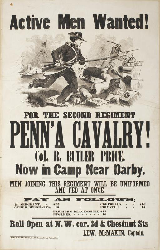 Active men wanted! For the Second Regiment Penn'a Cavalry! : Col. R. Butler Price, now in camp near Darby. Men joining this